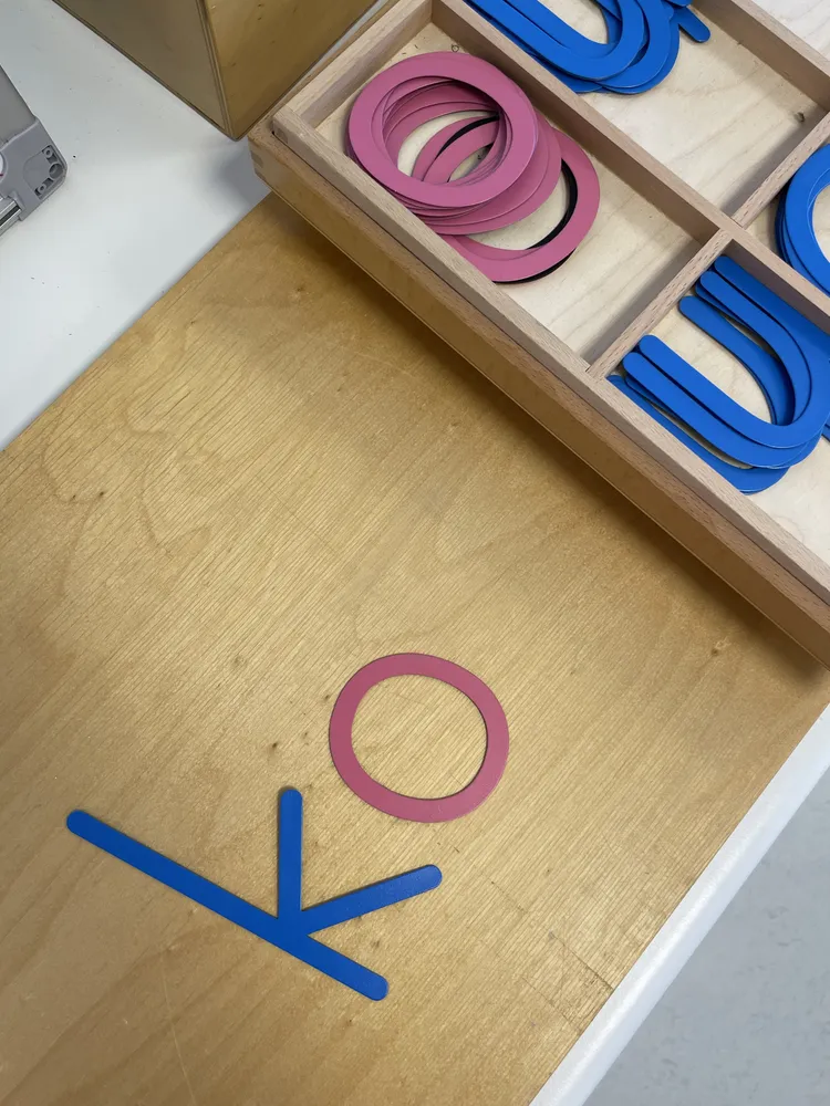 Till höger syns montessorimaterialet Det rörliga alfabetet
